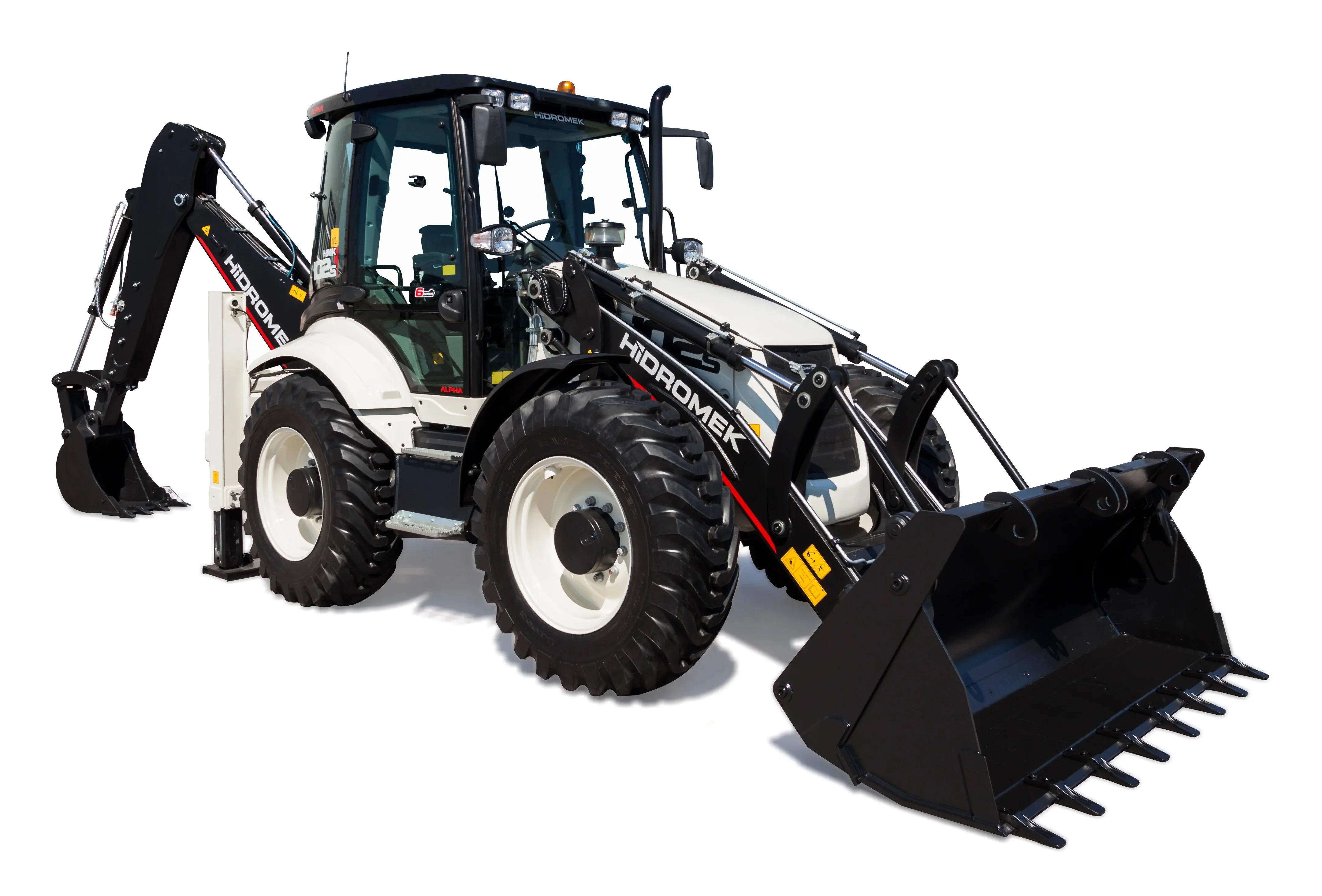 Ağırlık: 9.55t – Standart lastikler: 16.9x28-14 PR – Kepçe genişliği: 2.44m – Kova kapasitesi: 1.1m³ – Kova kapasitesi kazıcı: 0.17m³ – Sürücü: A